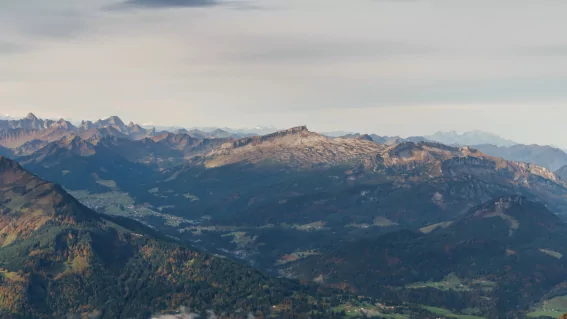 Aussicht aufs Kleinwalsertal mit dem Hohen Ifen von Oberstdorf aus.